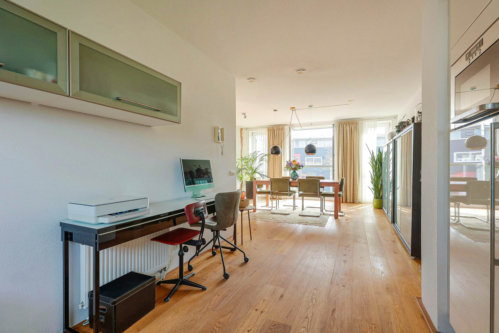 – Ample free parking and electric charging stations in front of the door. In this charming family home with a living area of ??approximately 126 m², you live around the corner from the lively, new NDSM site. You won’t need to do anything in this home; for instance, there is oak flooring on the ground floor and the first floor, the property has an A++ energy label, 12 solar panels, and a luxury kitchen with all necessary appliances is at your disposal. To complete the picture, you can enjoy the view from your new home on the house-wide balcony facing the sunny south.