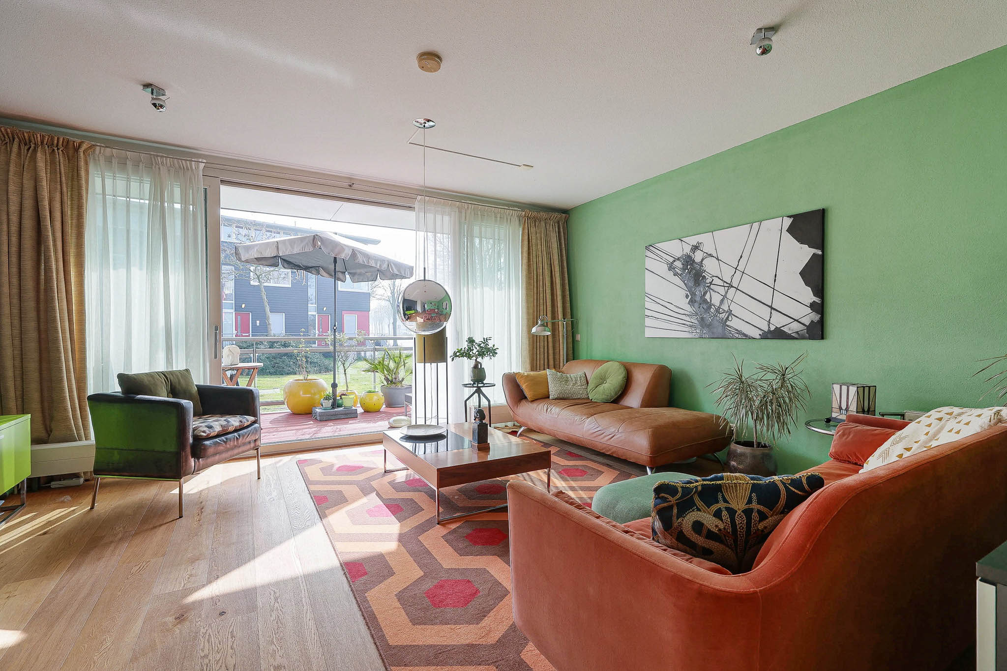 Upon arrival at this beautiful terraced house, it is immediately apparent how much care and attention has been devoted to sustainability and comfort. The charming facade, combined with the green views both in front of and behind the house, invites you to take a look inside. This is where your new chapter begins – and what a chapter it is!